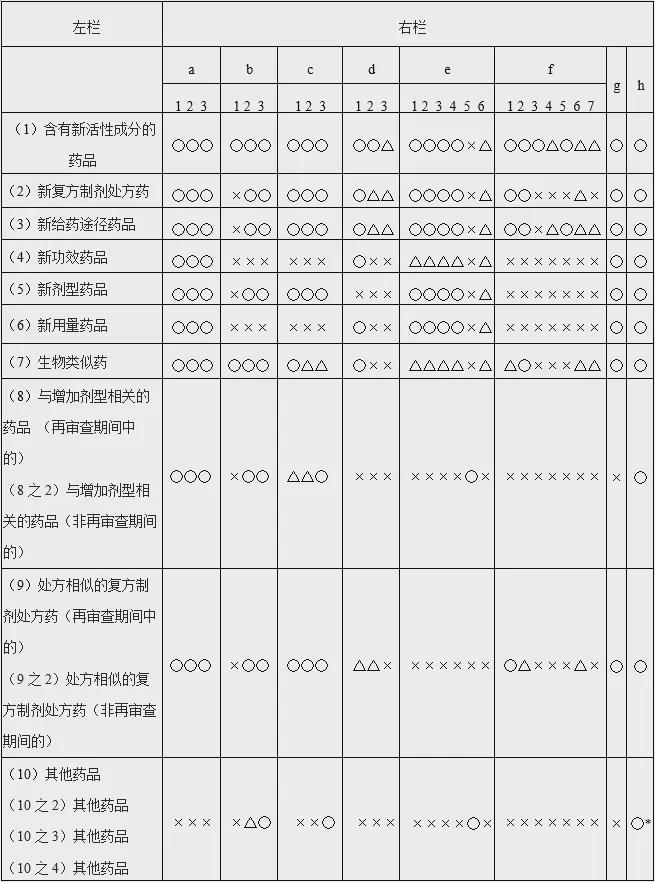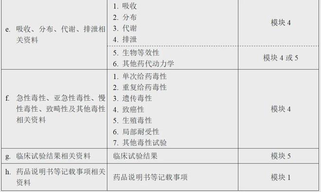③ 例如“b-1”,在注册分类(1)及(7)中是需要的,但在其他注册分类中不需要,也就可以知道,表2中对应“b-1”的“结构确证及物理和化学性质等”资料,除含有新活性成分的药品及生物类似药外是不需要的。因此,结合表2及表3,可以判断模块3中“结构确证及物理和化学性质等”资料是否需要。