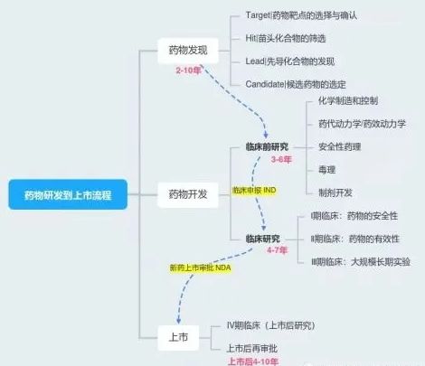 研发药物不像造自行车,我们造自行车有设计图、有说明书,照做就行,但一个药物的研发凝聚了成千上万个科学家的辛勤劳动,需要从零开始做基础研究找靶点,再针对靶点开发药物,还要有几百上千的患者共同参与做临床研究。前期靶点研究可能花10年,药物开发可能又花10年,每个药物的研发花费可能是十几、二十个亿,但进入临床试验后,最终成功上市率大概只有20-30%。而上市失败药物的研发成本只能由药厂独自承担,这些失败成本必须均摊到成功上市的药物中,否则一个药物的研发失败就足以拖垮整个药厂。